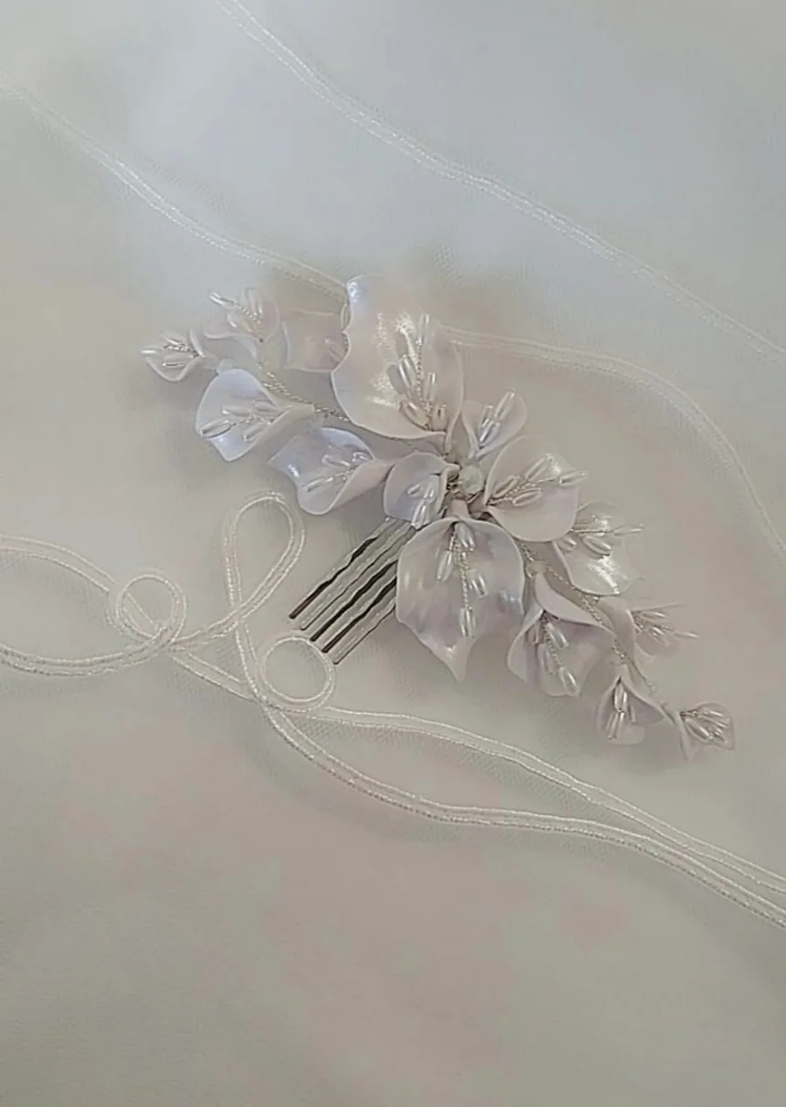 Em porcelana fria, essa grinalda é puro encanto em forma de copos de leite.